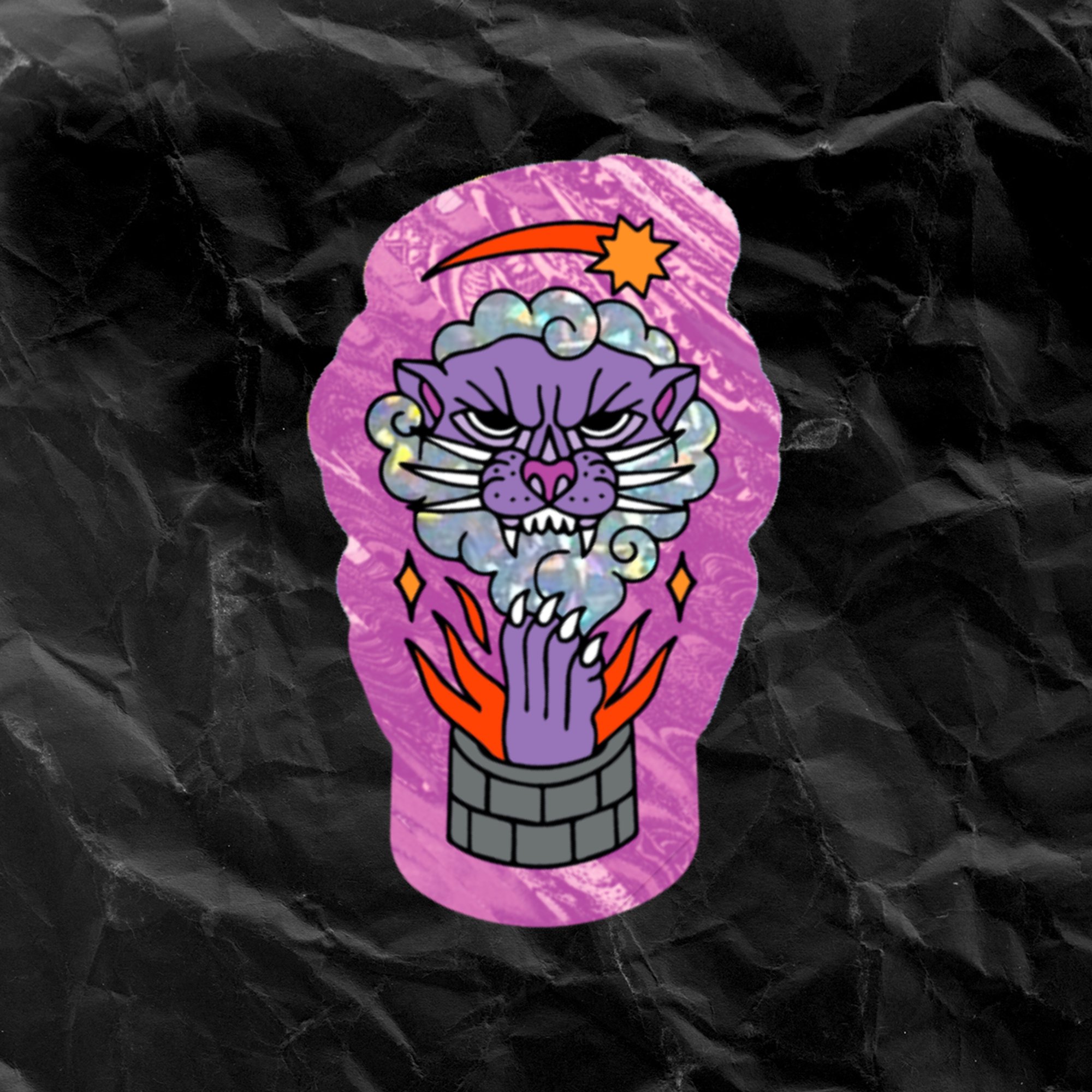 PANTHER - 3" glossy sticker with holographic glitter; made of premium, heat/water/scratch resistant vinyl.